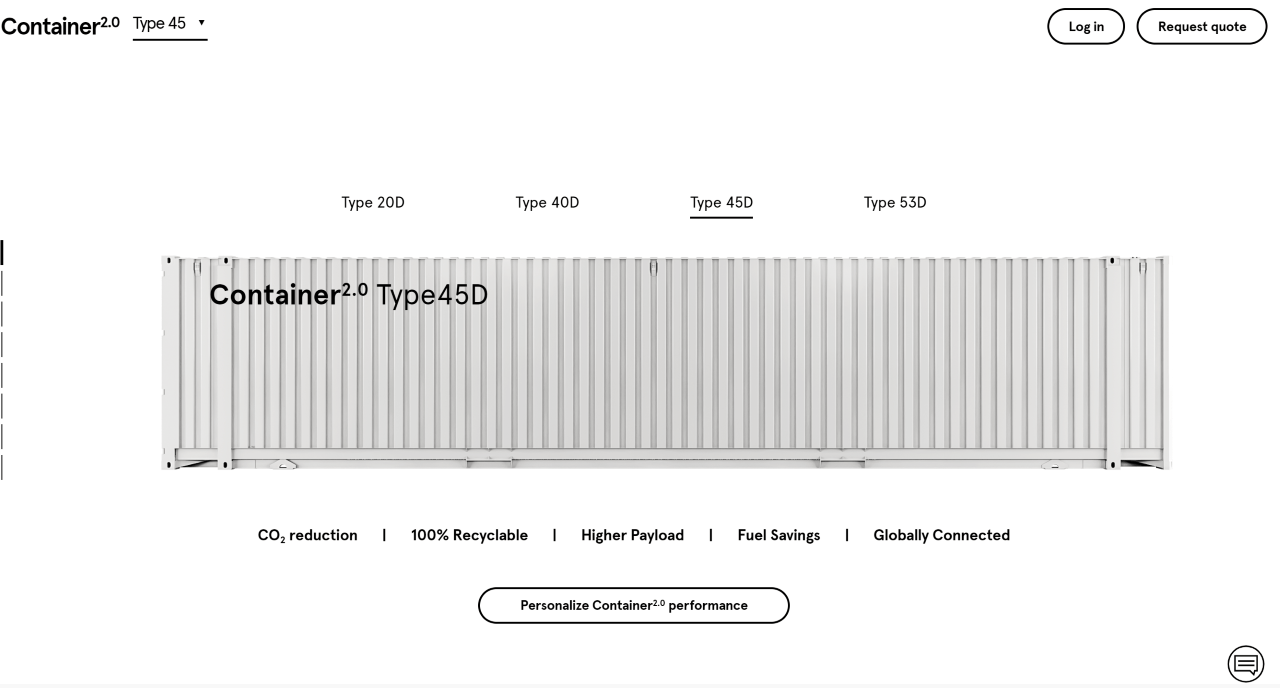 Visit www.container2.com and calculate your benefits based on the type of Container2.0, either 20ft, 40ft HC, 45ft HCPW or 53ft, that applies to your specific case (reduction of CO2 emissions, fuel savings, or increase net income…)